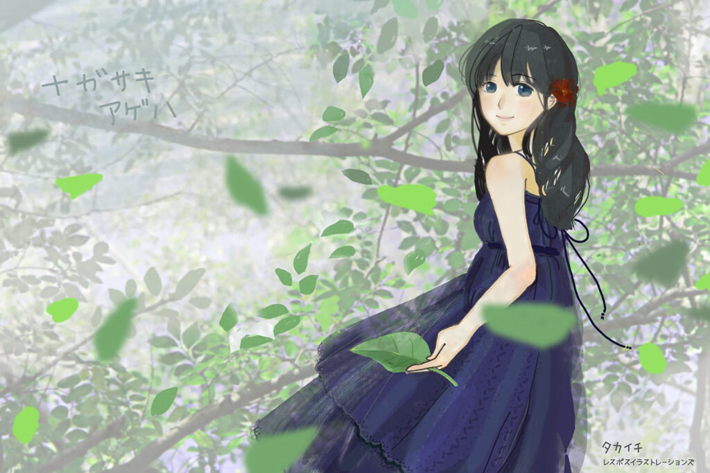 ソーシャルゲームや小説などでよく見るタッチの二次元イラスト。繊細な描写で見る人を仮想世界に引き込みます(萌えイラストなど)。写実的な描写も多く臨場感があります。デッサン力やパース、色彩の透明感をマスターした「神絵師」と呼ばれる方々がいますね。アート系イラストで求められるのはクリエイターの個性的な画風ですが、二次元イラストで求められるのは仮想世界や設定シーンにおけるリアリティです。(ちなみにイラストはナガサキアゲハの擬人化です。飼っていた幼虫が羽化して巣立っていったのです。感無量です)
