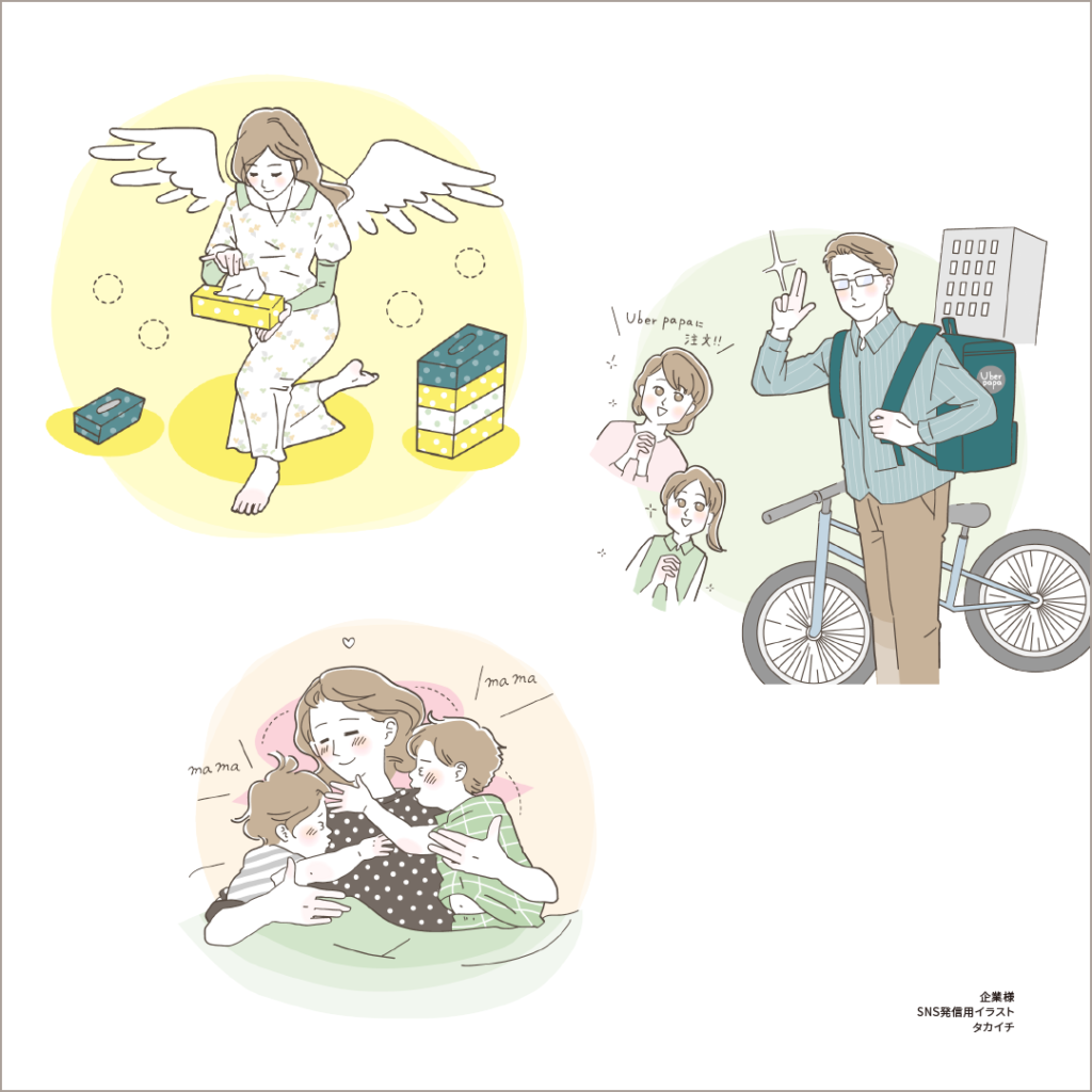 シンプルでおしゃれなタッチは7頭身前後。スタイリッシュな雰囲気で伝えたいことをイラスト化します。