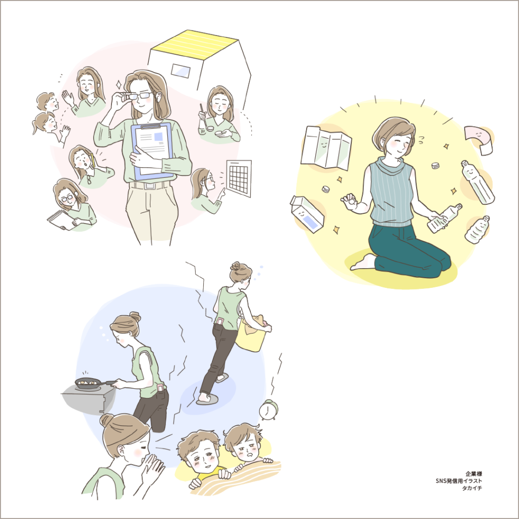 ・チラシメインビジュアル:主に女性向けの商品サービスイラストとして
