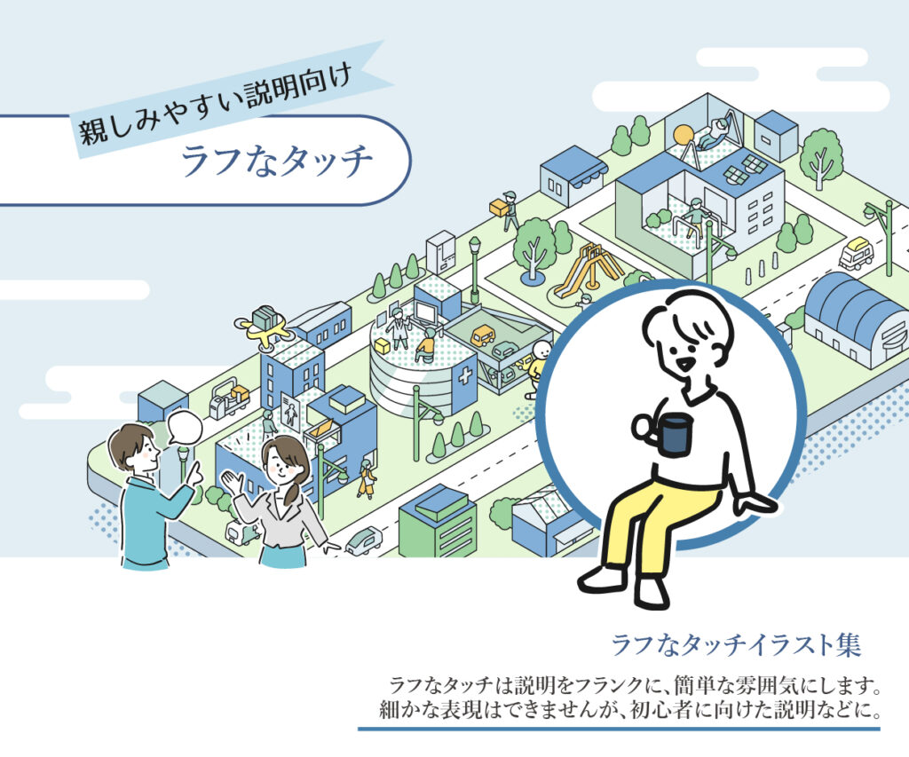 ラフなタッチは説明をフランクに、簡単な雰囲気にするタッチです。細かな表現はできませんが、初心者に向けた説明などに。